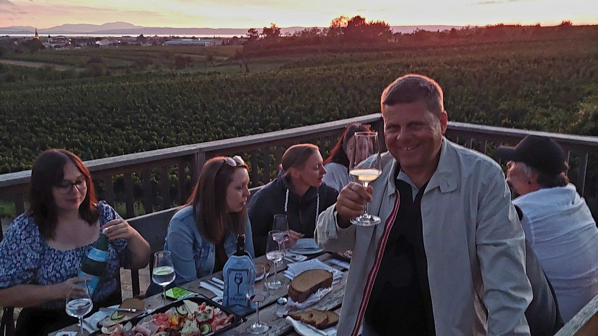 Spontan führte uns Kurt noch durch die Altstadt von Rust, zeigte versteckte Ecken und verlieh den Gassen Leben durch seine Geschichten. Den Tag ließen wir bei einem stimmungsvollen Abendessen am Hafen im Restaurant Niki ausklingen, während die Sonne den Neusiedler See in goldenes Licht tauchte.