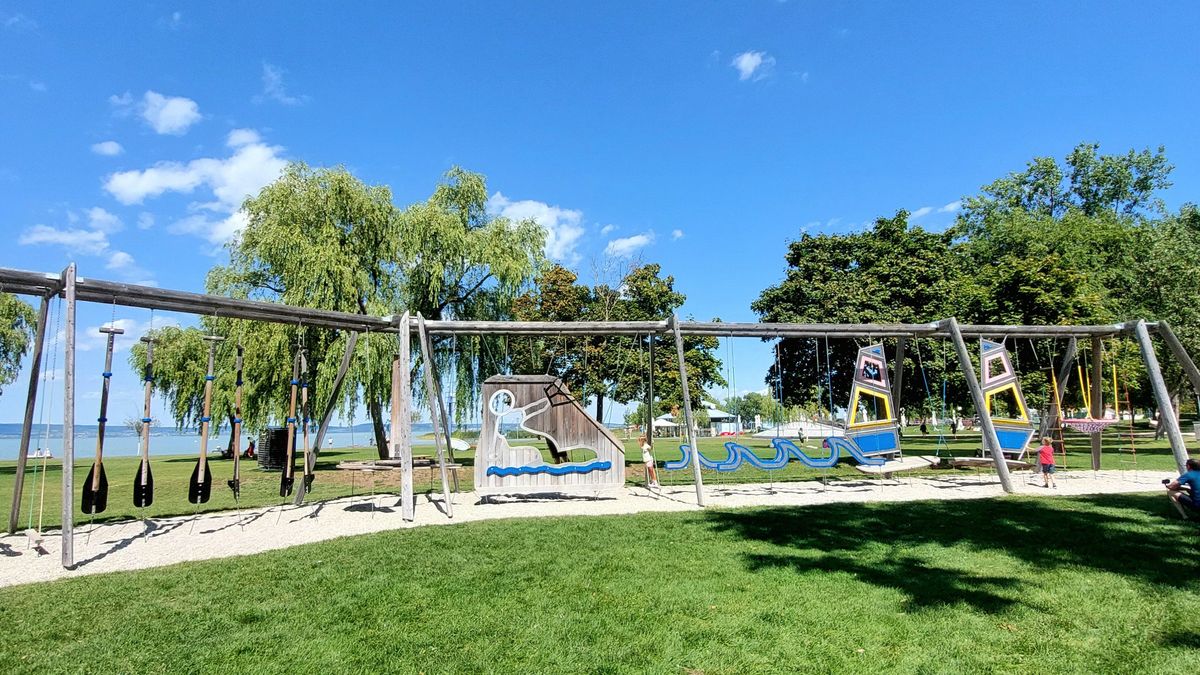 Kurz vor Mittag erreichten wir den Podo Beach, wo wir zunächst eine Führung erhielten, bevor wir zum Mittagessen eingeladen wurden. Besonders beeindruckend war der weitläufige Strandabschnitt mit großzügigen Liegewiesen – ideal für Familien, aber auch für Ruhesuchende. Die flache Wasserzugangsstelle eignet sich perfekt für Kinder, die sich auf Spielplätzen und Wiesen austoben können. Die verschiedenen Erlebnisbereiche begeisterten: PODOplay bot Spiel und Spaß für Kinder, PODOactive alles rund um Sportarten wie Surfen, Segeln, Beachvolleyball, Basketball, Fitness und Teqball.